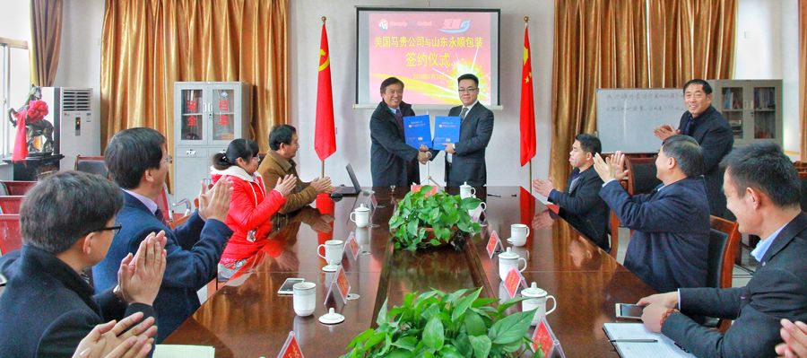 1月24日上午,美國馬貴公司與昌邑永順包裝的簽約儀式隆重舉行,雙方就一條設(shè)計(jì)幅寬2850mm、速度320米/分的雙刀整套全進(jìn)口瓦線正式達(dá)成合作意向。